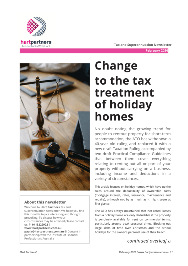 No doubt noting the growing trend for people to rent out property for short-term accommodation, the ATO has withdrawn a 40-year old ruling and replaced it with a new draft Taxation Ruling accompanied by two draft Practical Compliance Guidelines that between them cover everything relating to renting out all or part of your property without carrying on a business, including income and deductions in a variety of circumstances.